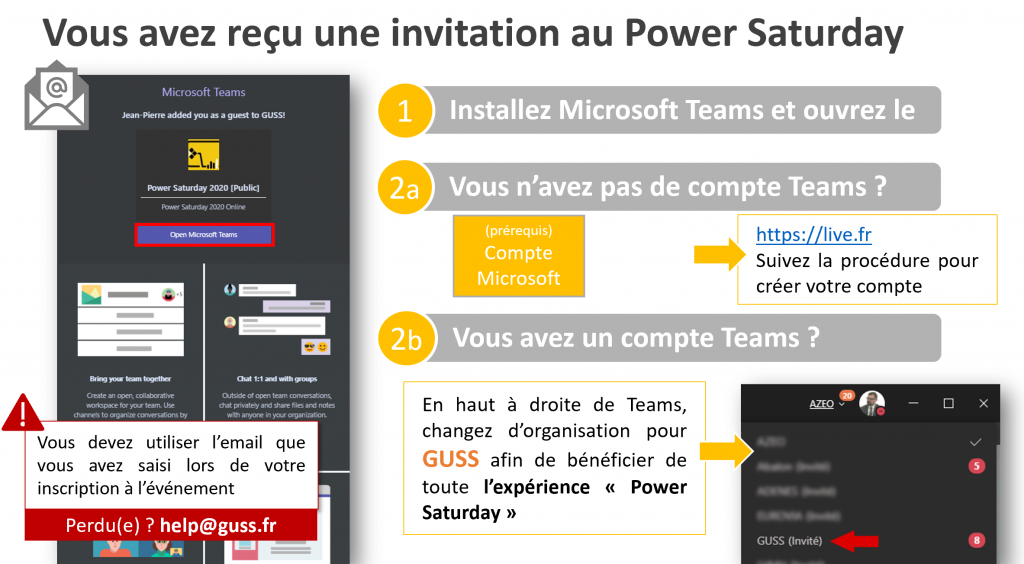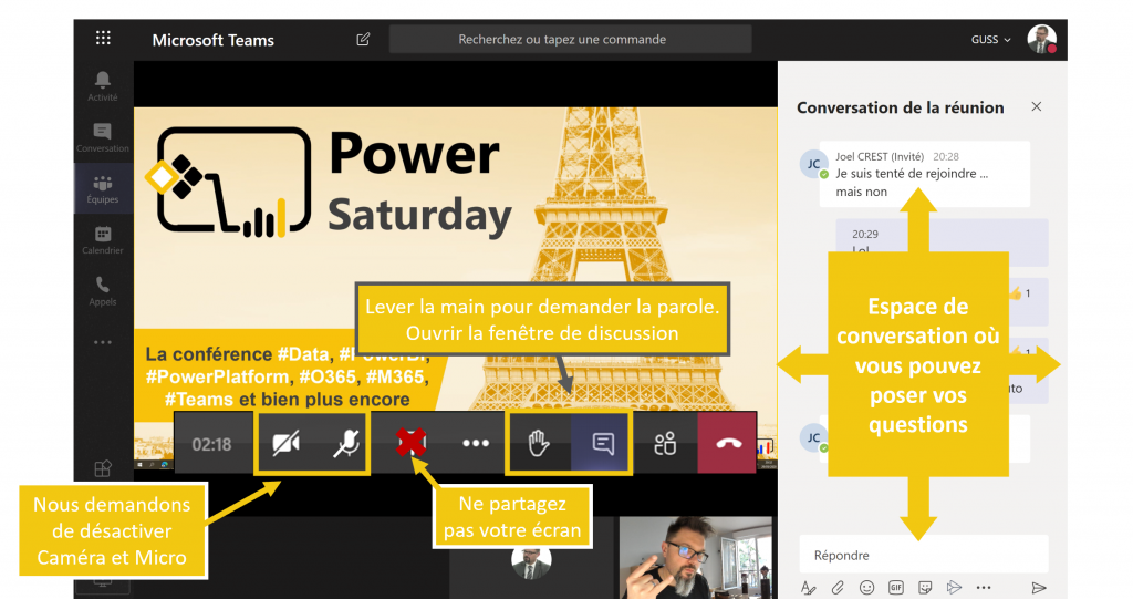 Nous vous recommandons d’installer le logiciel Teams pour profiter de toute l’expérience du Power Saturday.