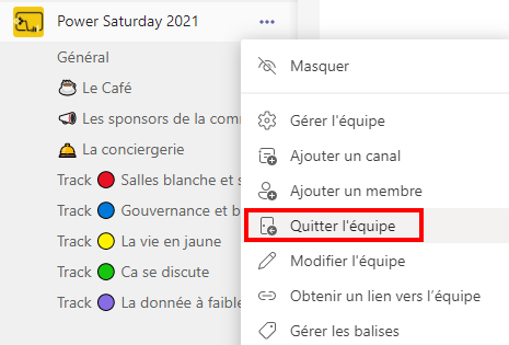 Si vous ne vous inscrivez pas dans cet esprit communautaire, vous pouvez à tout moment quitter le groupe de vous-même (cliquez sur les … à côté du nom de l’équipe dans Teams). Si vous avez la moindre question, envoyez là à help@guss.fr